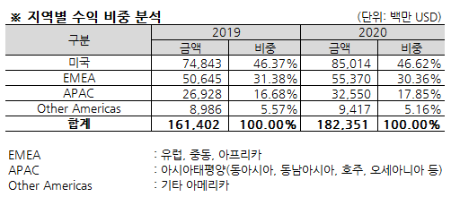 - 일반관리비 구성내역 : 감가상각, 장비관련 비용, 법률 관련 비용, 감사, 정보 기술 컨설팅, 외부 법률 및 아웃소싱 서비스와 주로 관련된 프로페셔널 서비스 수수료